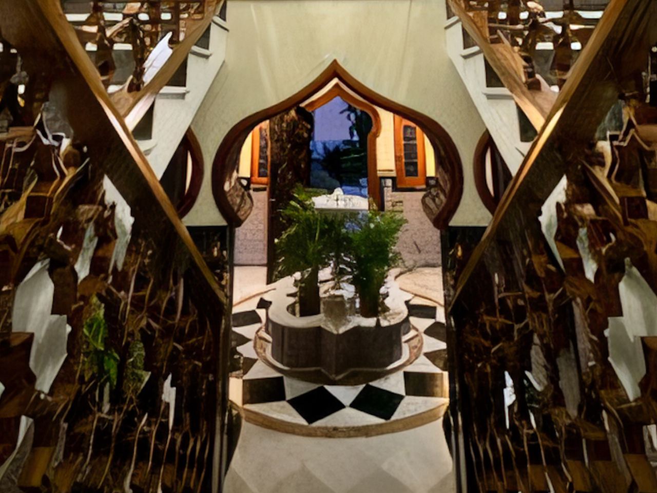La Villa Árabe es un oasis de lujo inspirado en las Mil y Una Noches, situada junto al Paraje Natural de Punta Entinas-Sabinar y a tan solo 10 minutos de la playa. Su imponente cúpula azul es el centro visual de la villa, evocando la grandeza y la magia de los antiguos palacios árabes. Los interiores son igualmente impactantes, decorados con frescos originales del renombrado artista Waldi Wrobel, celosías iluminadas, y fuentes árabes interiores que añaden serenidad y elegancia a los espacios. Los suelos de mármol, arcos de madera tallada, azulejos andalusí y nazari, y carpintería de pino tea crean una atmósfera de lujo y exotismo. El dormitorio principal, con una cama de dosel y baño en suite, se abre a una gran terraza con vistas al jardín.